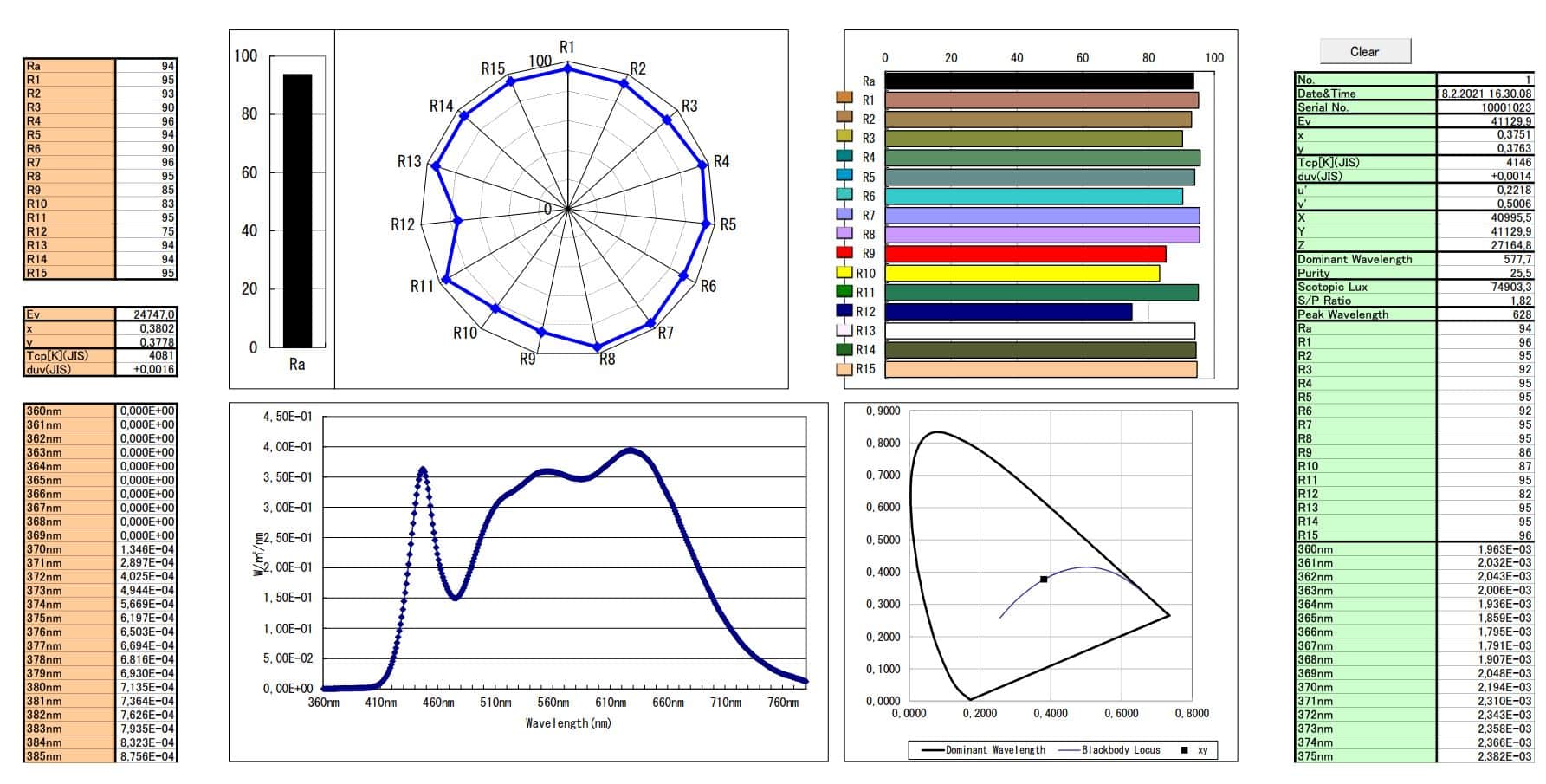 Mitattu värispektri: